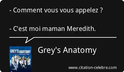 - Comment vous vous appelez ? - C'est moi maman Meredith.