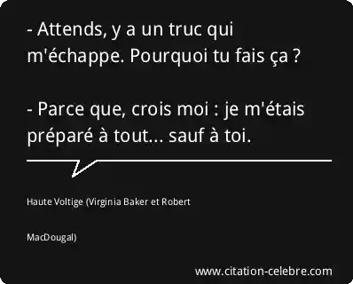 - Parce que, crois moi : je m'étais préparé à tout... sauf à toi.