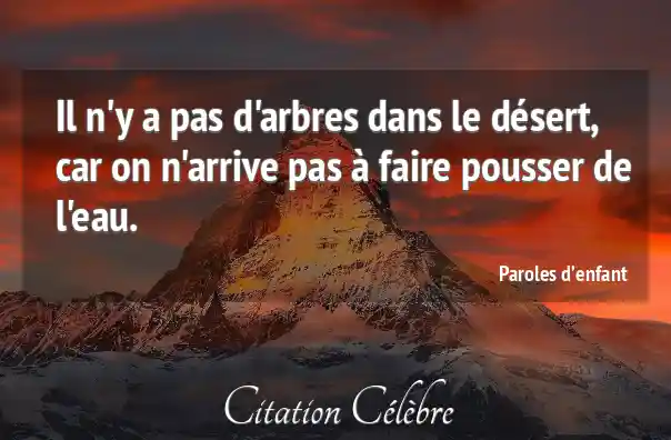 Il n'y a pas d'arbres dans le désert, car on n'arrive pas à faire pousser de l'eau.