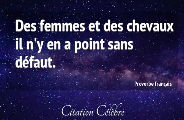 Des femmes et des chevaux il n'y en a point sans défaut.