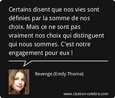 Certains disent que nos vies sont définies par la somme de nos choix. Mais ce ne sont pas vraiment nos choix qui distinguent qui nous sommes. C'est notre engagement pour eux !