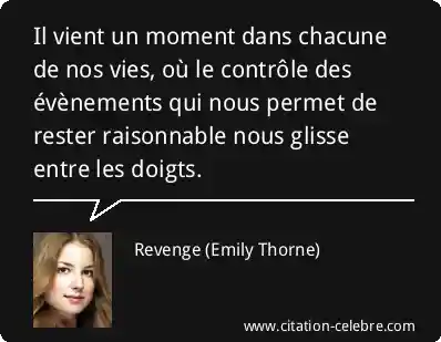 Il vient un moment dans chacune de nos vies, où le contrôle des évènements qui nous permet de rester raisonnable nous glisse entre les doigts.
