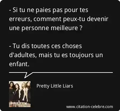- Si tu ne paies pas pour tes erreurs, comment peux-tu devenir une personne meilleure ? - Tu dis toutes ces choses d'adultes, mais tu es toujours un enfant.