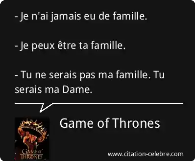 Citation  Game of Thrones famille : - Je n'ai jamais eu de famille. - Je peux... (Gendry et Arya Stark - film & série)