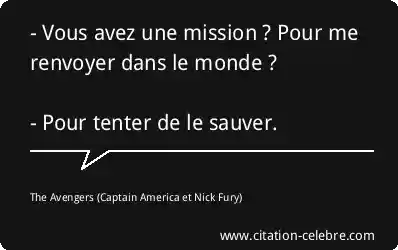 - Vous avez une mission ? Pour me renvoyer dans le monde ? - Pour tenter de le sauver.