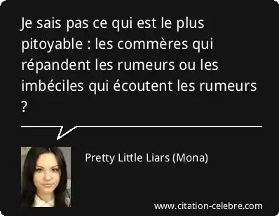 Je sais pas ce qui est le plus pitoyable : les commères qui répandent les rumeurs ou les imbéciles qui écoutent les rumeurs ?