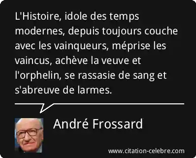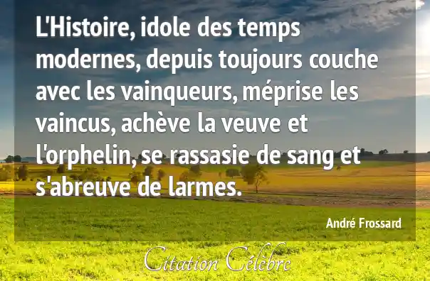 L'Histoire, idole des temps modernes, depuis toujours couche avec les vainqueurs, méprise les vaincus, achève la veuve et l'orphelin, se rassasie de sang et s'abreuve de larmes.
