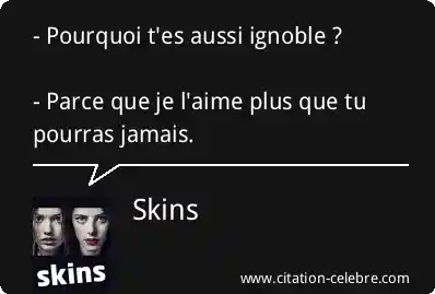 - Pourquoi t'es aussi ignoble ? - Parce que je l'aime plus que tu pourras jamais.