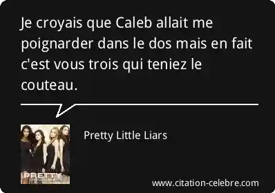 Je croyais que Caleb allait me poignarder dans le dos mais en fait c'est vous trois qui teniez le couteau.