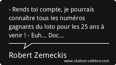 - Rends toi compte, je pourrais connaître tous les numéros gagnants du loto pour les 25 ans à venir ! - Euh... Doc...