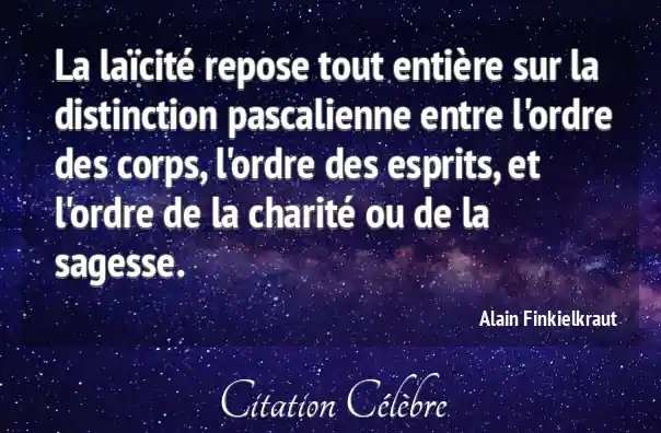 La laïcité repose tout entière sur la distinction pascalienne entre l'ordre des corps, l'ordre des esprits, et l'ordre de la charité ou de la sagesse.