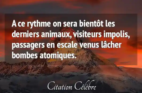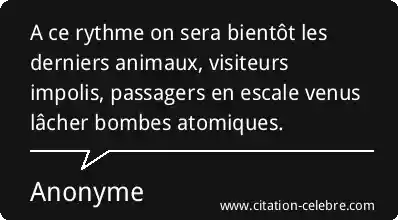 A ce rythme on sera bientôt les derniers animaux, visiteurs impolis, passagers en escale venus lâcher bombes atomiques.