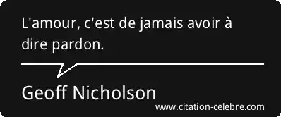 Citation Geoff Nicholson amour : L'amour, c'est de jamais avoir à dire pardon....