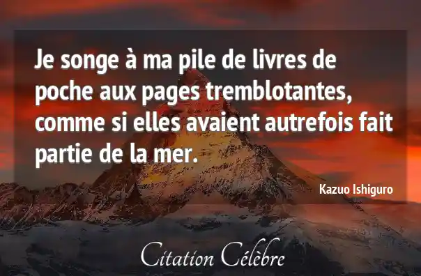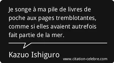 Je songe à ma pile de livres de poche aux pages tremblotantes, comme si elles avaient autrefois fait partie de la mer.