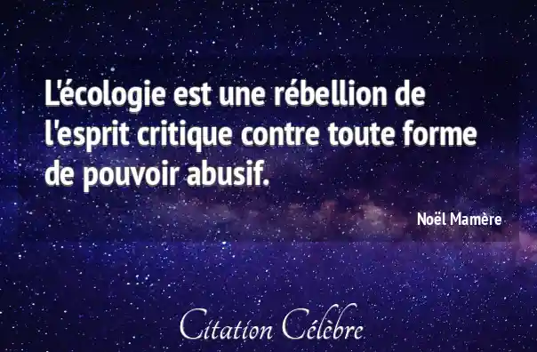 L'écologie est une rébellion de l'esprit critique contre toute forme de pouvoir abusif.