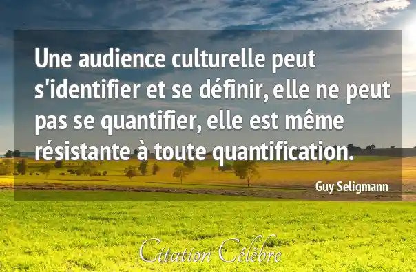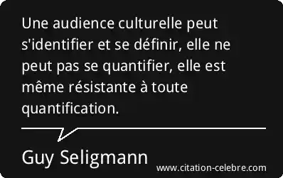 Une audience culturelle peut s'identifier et se définir, elle ne peut pas se quantifier, elle est même résistante à toute quantification.