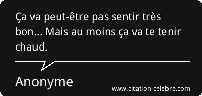 Ça va peut-être pas sentir très bon... Mais au moins ça va te tenir chaud.