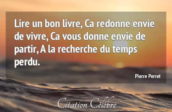 Lire un bon livre, Ca redonne envie de vivre, Ca vous donne envie de partir, A la recherche du temps perdu.