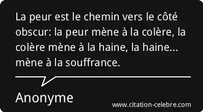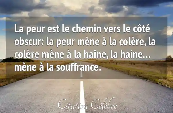 La peur est le chemin vers le côté obscur: la peur mène à la colère, la colère mène à la haine, la haine... mène à la souffrance.
