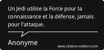 Un Jedi utilise la Force pour la connaissance et la défense, jamais pour l'attaque.
