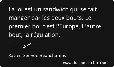 La loi est un sandwich qui se fait manger par les deux bouts. Le premier bout est l'Europe. L'autre bout, la régulation.