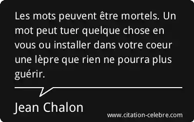 Les mots peuvent être mortels. Un mot peut tuer quelque chose en vous ou installer dans votre coeur une lèpre que rien ne pourra plus guérir.