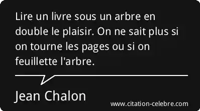 Lire un livre sous un arbre en double le plaisir. On ne sait plus si on tourne les pages ou si on feuillette l'arbre.