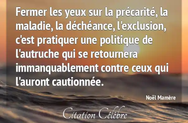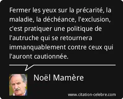 Fermer les yeux sur la précarité, la maladie, la déchéance, l'exclusion, c'est pratiquer une politique de l'autruche qui se retournera immanquablement contre ceux qui l'auront cautionnée.