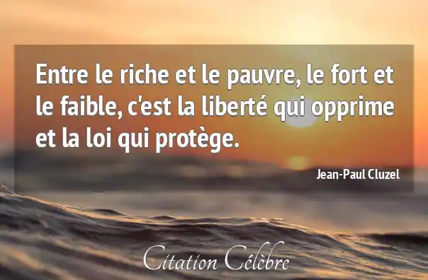 Entre le riche et le pauvre, le fort et le faible, c'est la liberté qui opprime et la loi qui protège.
