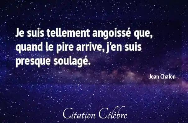Je suis tellement angoissé que, quand le pire arrive, j'en suis presque soulagé.