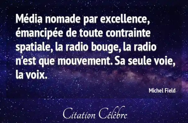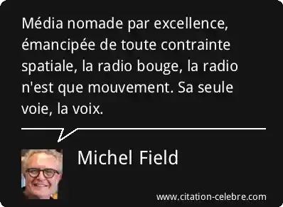 Média nomade par excellence, émancipée de toute contrainte spatiale, la radio bouge, la radio n'est que mouvement. Sa seule voie, la voix.