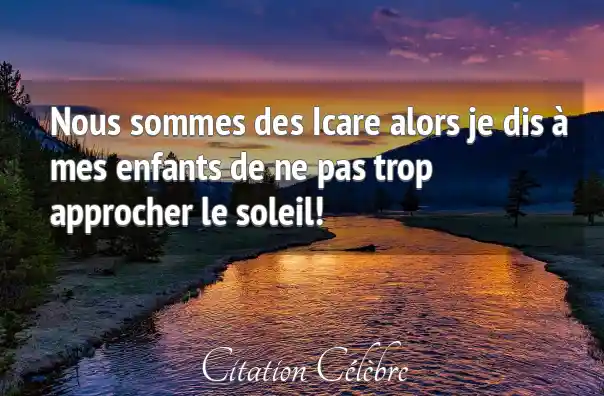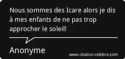 Nous sommes des Icare alors je dis à mes enfants de ne pas trop approcher le soleil!