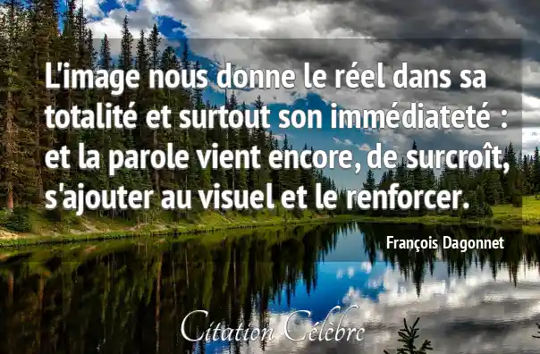 L'image nous donne le réel dans sa totalité et surtout son immédiateté : et la parole vient encore, de surcroît, s'ajouter au visuel et le renforcer.