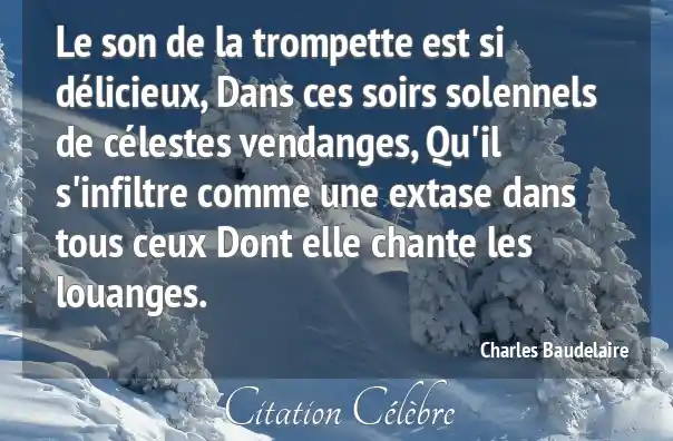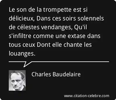 Le son de la trompette est si délicieux, Dans ces soirs solennels de célestes vendanges, Qu'il s'infiltre comme une extase dans tous ceux Dont elle chante les louanges.