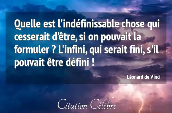 Quelle est l'indéfinissable chose qui cesserait d'être, si on pouvait la formuler ? L'infini, qui serait fini, s'il pouvait être défini !