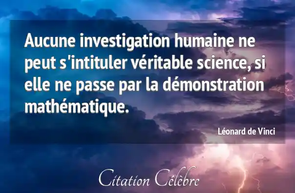 Aucune investigation humaine ne peut s'intituler véritable science, si elle ne passe par la démonstration mathématique.