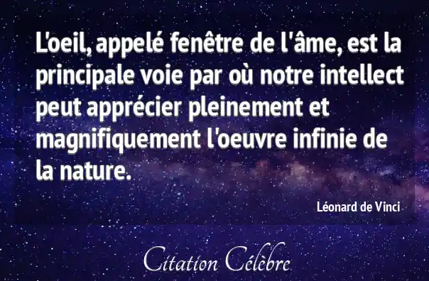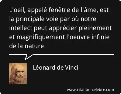 L'oeil, appelé fenêtre de l'âme, est la principale voie par où notre intellect peut apprécier pleinement et magnifiquement l'oeuvre infinie de la nature.