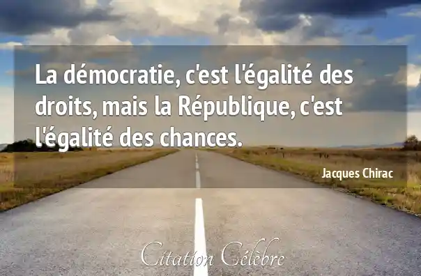 La démocratie, c'est l'égalité des droits, mais la République, c'est l'égalité des chances.