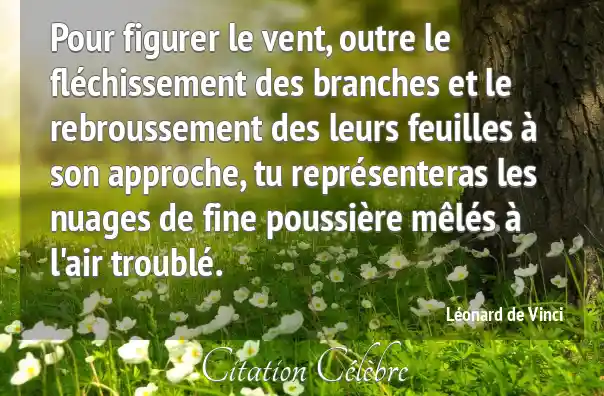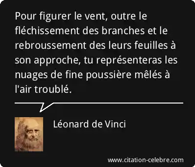 Pour figurer le vent, outre le fléchissement des branches et le rebroussement des leurs feuilles à son approche, tu représenteras les nuages de fine poussière mêlés à l'air troublé.