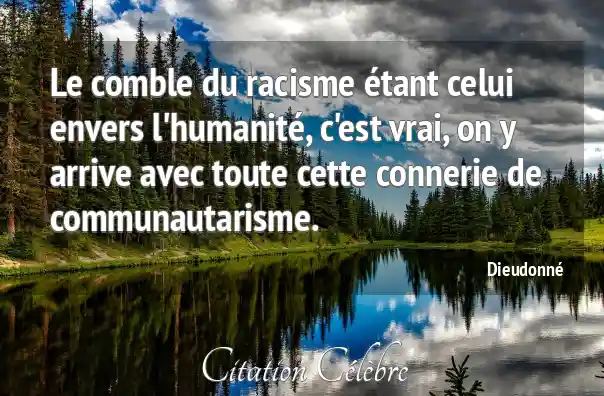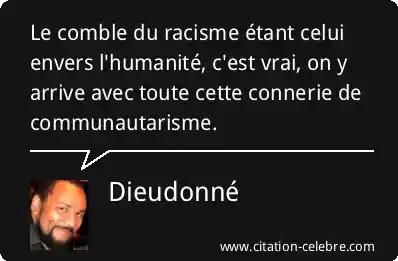 Le comble du racisme étant celui envers l'humanité, c'est vrai, on y arrive avec toute cette connerie de communautarisme.