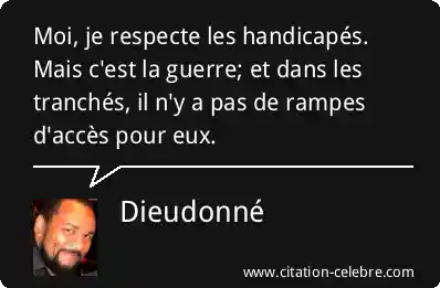 Moi, je respecte les handicapés. Mais c'est la guerre; et dans les tranchés, il n'y a pas de rampes d'accès pour eux.