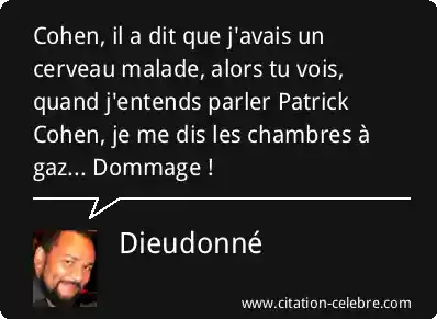 Cohen, il a dit que j'avais un cerveau malade, alors tu vois, quand j'entends parler Patrick Cohen, je me dis les chambres à gaz... Dommage !