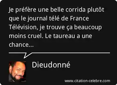 Je préfère une belle corrida plutôt que le journal télé de France Télévision, je trouve ça beaucoup moins cruel. Le taureau a une chance...