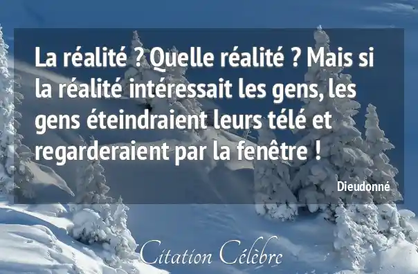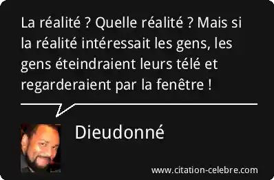 La réalité ? Quelle réalité ? Mais si la réalité intéressait les gens, les gens éteindraient leurs télé et regarderaient par la fenêtre !
