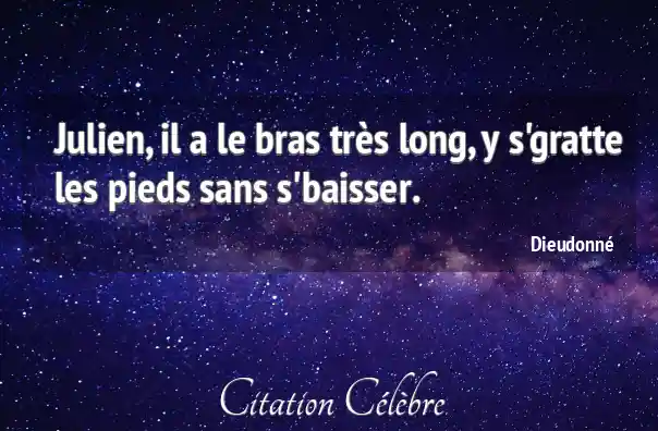 Julien, il a le bras très long, y s'gratte les pieds sans s'baisser.