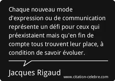 Chaque nouveau mode d'expression ou de communication représente un défi pour ceux qui préexistaient mais qu'en fin de compte tous trouvent leur place, à condition de savoir évoluer.