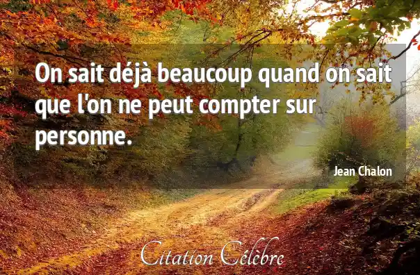 On sait déjà beaucoup quand on sait que l'on ne peut compter sur personne.