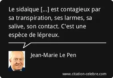 Le sidaïque [...] est contagieux par sa transpiration, ses larmes, sa salive, son contact. C'est une espèce de lépreux.