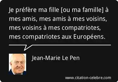 Je préfère ma fille [ou ma famille] à mes amis, mes amis à mes voisins, mes voisins à mes compatriotes, mes compatriotes aux Européens.