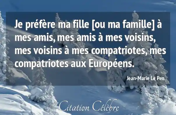 Le message central à retenir est la doctrine du cercle restreint : plus le lien est proche (familial, amical, national), plus il est fort et prioritaire. La citation est une illustration forte de la préférence nationale, étayée par une préférence locale et familiale. Elle incarne une vision politique qui insiste sur la préservation des identités et des intérêts nationaux et intimes face à l'intégration supranationale.